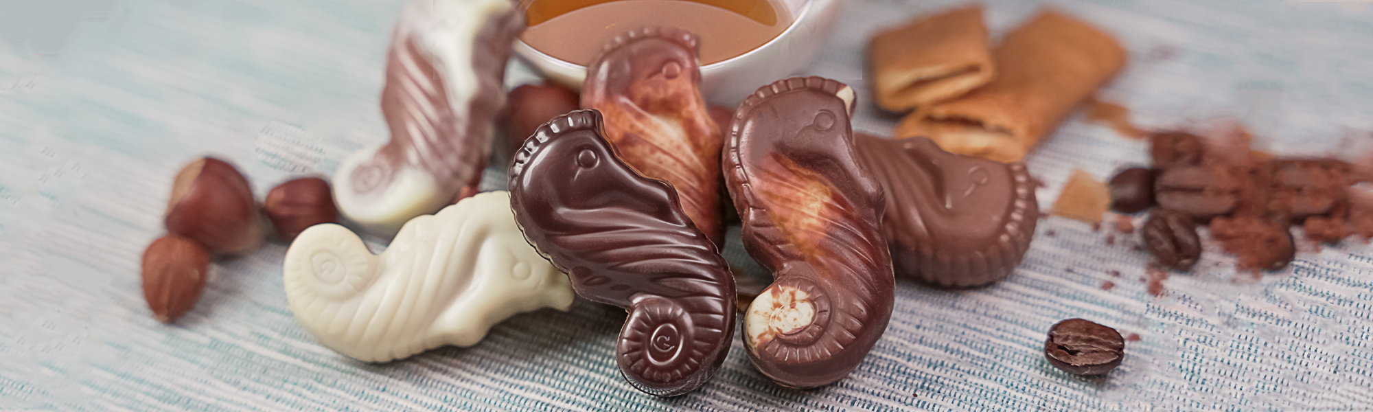 Ons Zeepaarden assortiment is een feestje voor chocoladeliefhebbers. Het biedt voor ieder wat wils met een heerlijk pallet aan smaken. Ga je voor onze beroemde hazelnoot praliné of misschien voor karamel of melktruffel?